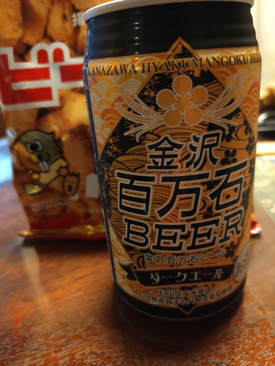 甘いものが続いたので、最後は塩気のあるお菓子と金沢ご当地ビール。