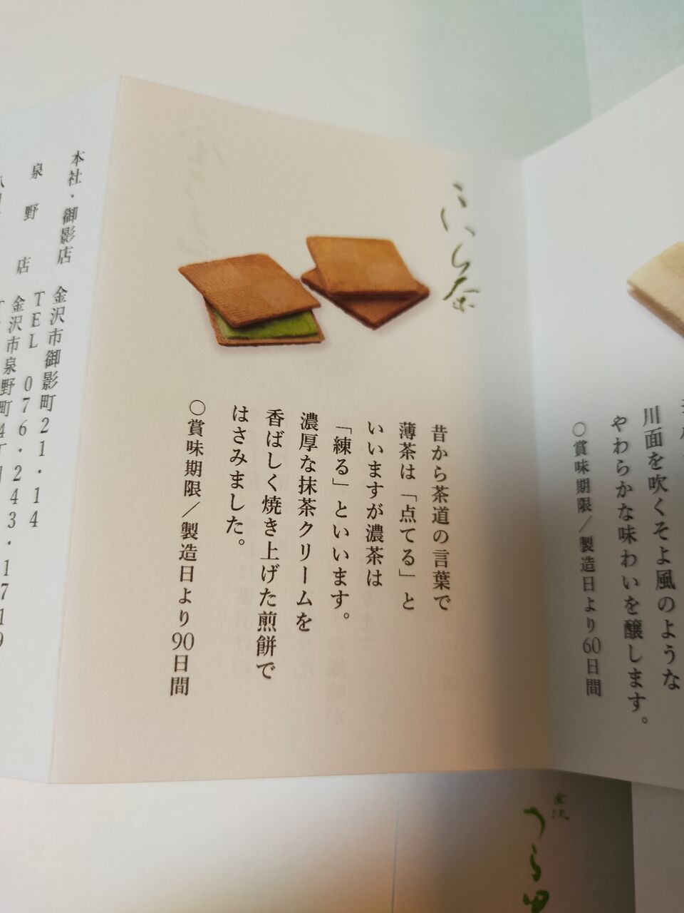 同じく金沢百番街あんとで購入した うら田のお菓子。