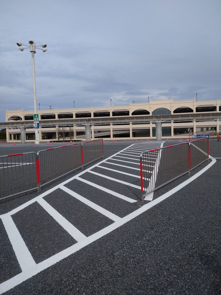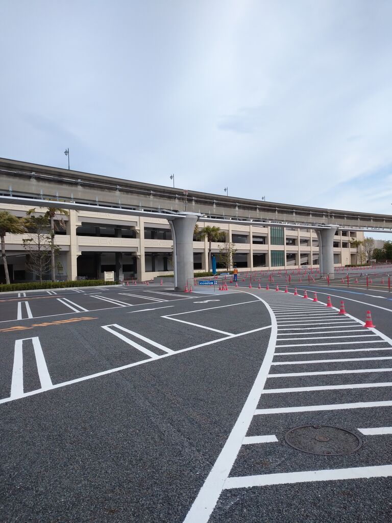 帰る前にもう一つ。リゾートラインに乗ると見えるパーク駐車場にキャストさんによるコーンアートがあると聞いて、リゾートライナーに乗りました。