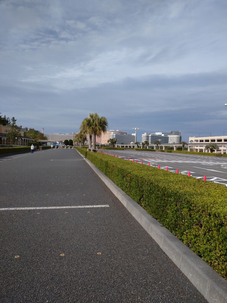タイミング合わず、ずれてますが道路の先にシンデレラ城が見えると おぉ♪(ノ)’∀`(ヾ)ってなる(笑)