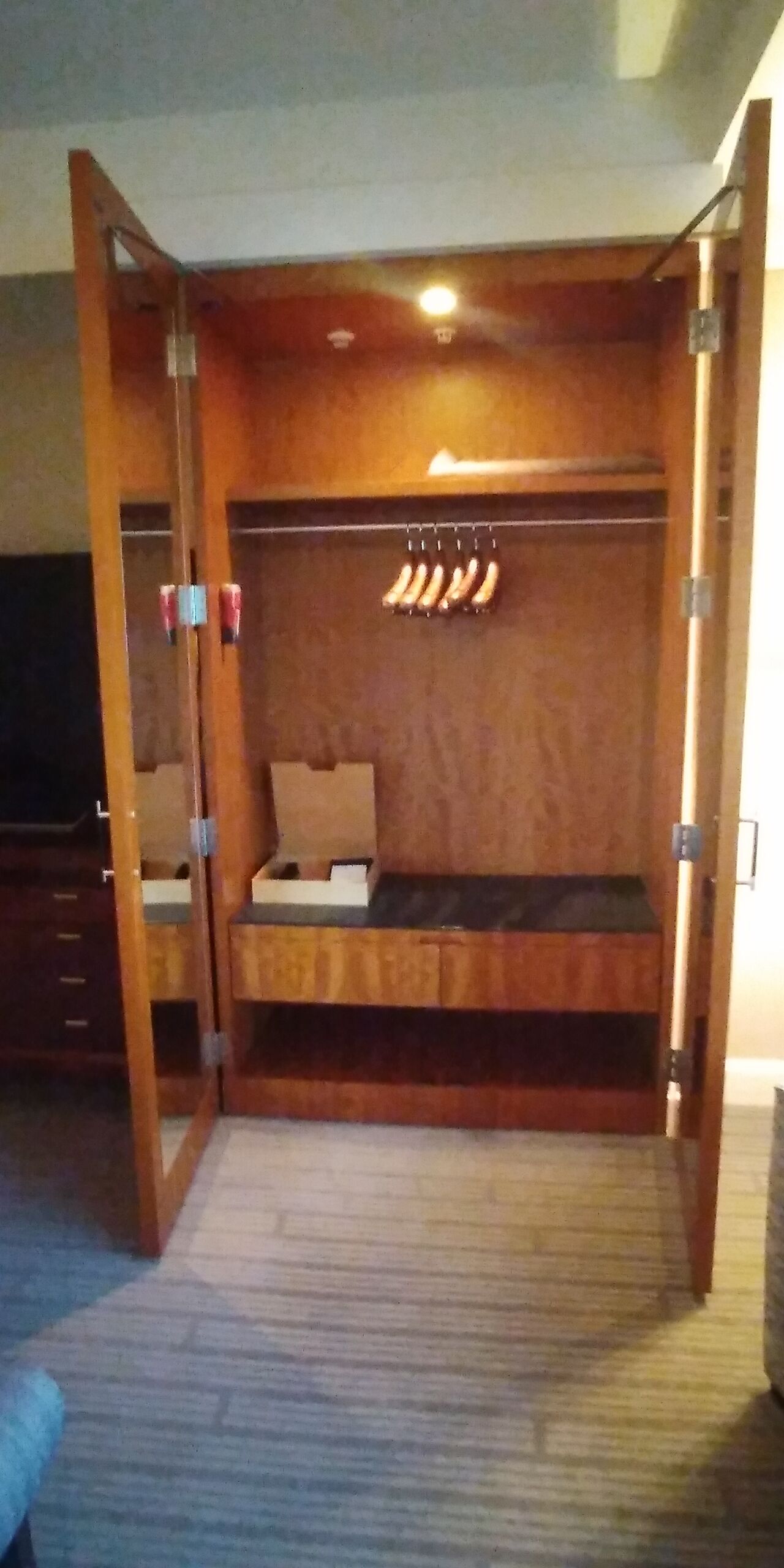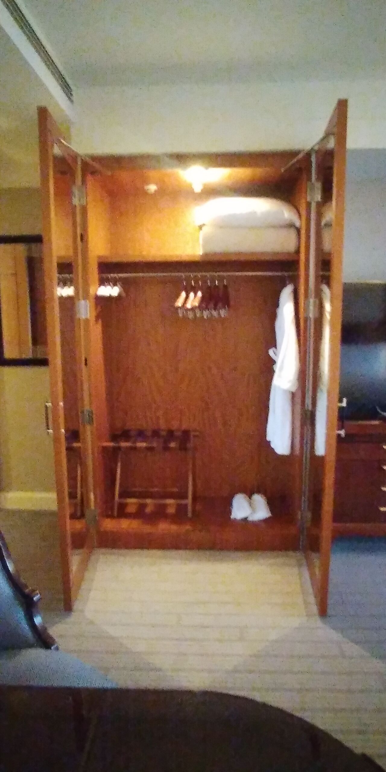 窓側のクローゼットにはシューシャインセットや金庫が。
