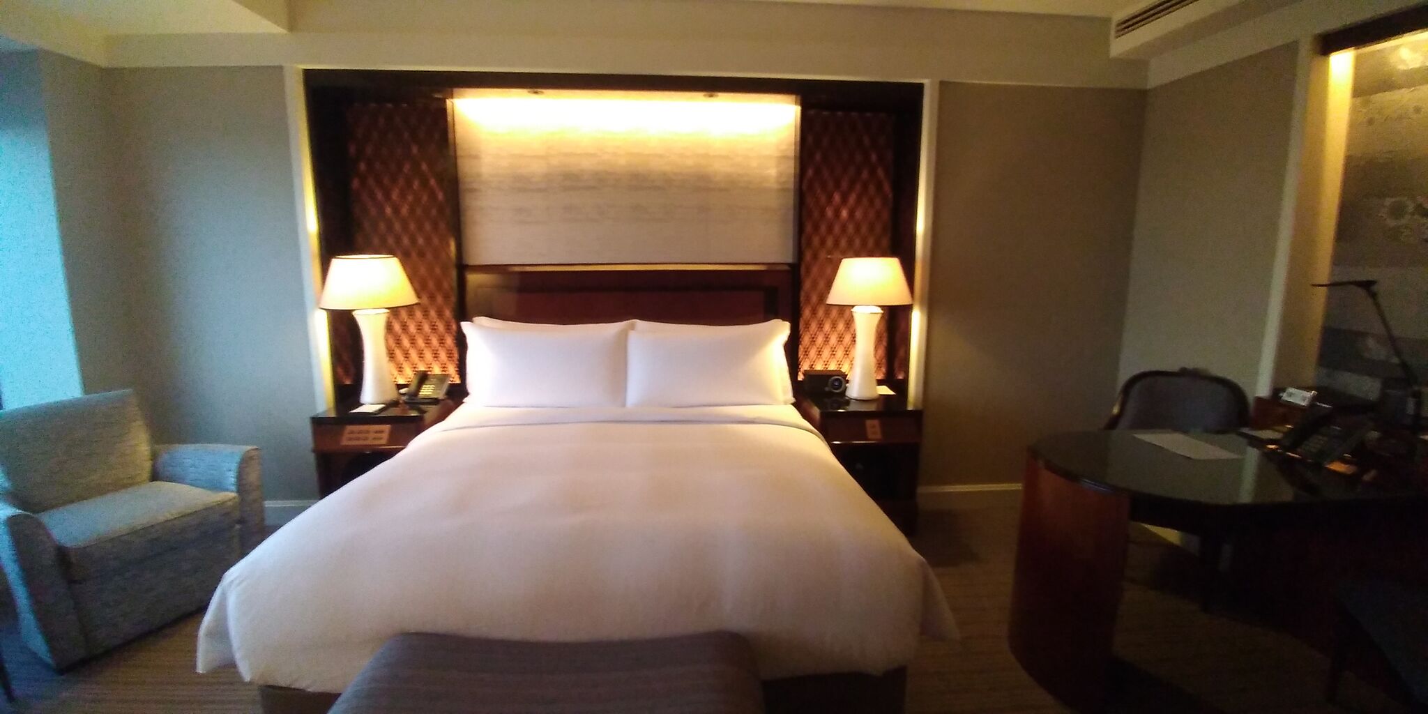 ヘッドヘッドと、ヘッドサイドのライトはやさしい色合い。