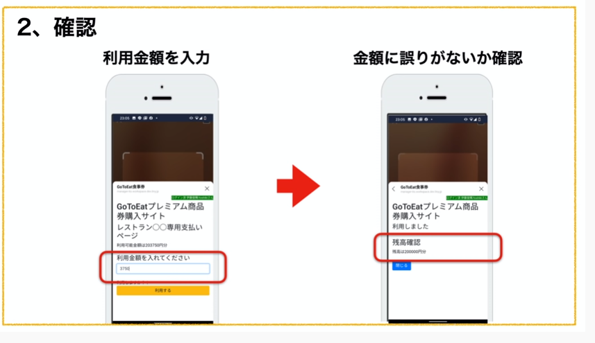 利用金額を入力して、店員さんに確認してもらって利用するをタップすると完了